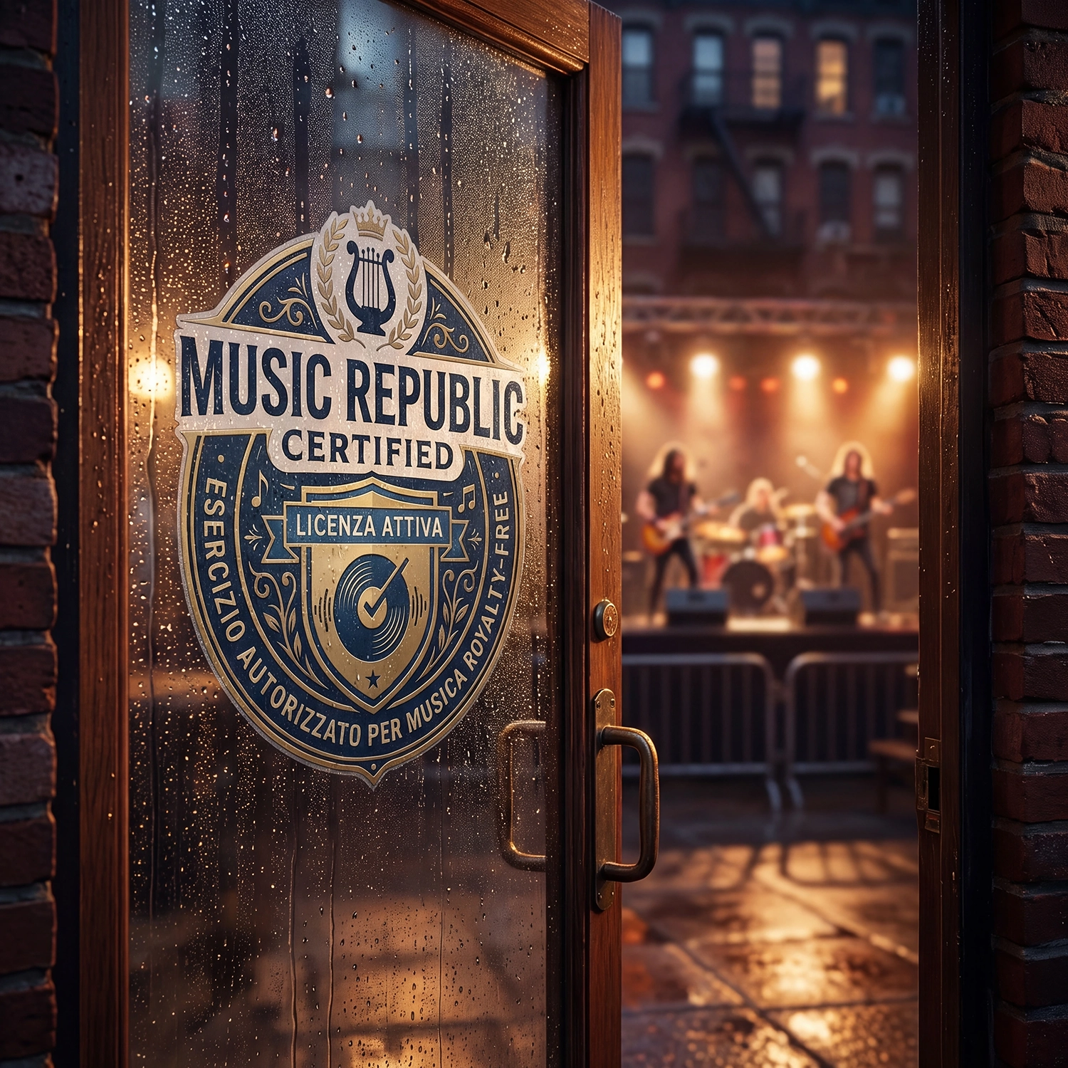 Sigillo identificativo che comunica ai tuoi clienti e alle autorità che l'esercizio è autorizzato Music Republic.